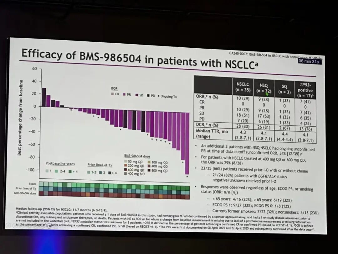 17、PRMT5抑制剂BMS-986504 初步结果,肺癌有效率29%,TP53突变41%ORR。