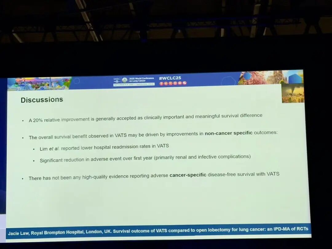 基于3项随机独立研究数据分析显示,全胸腔镜肺叶切除术(VATS)相比开放手术降低了21%的死亡风险。讨论考虑一些非肿瘤因素入院频率有关。