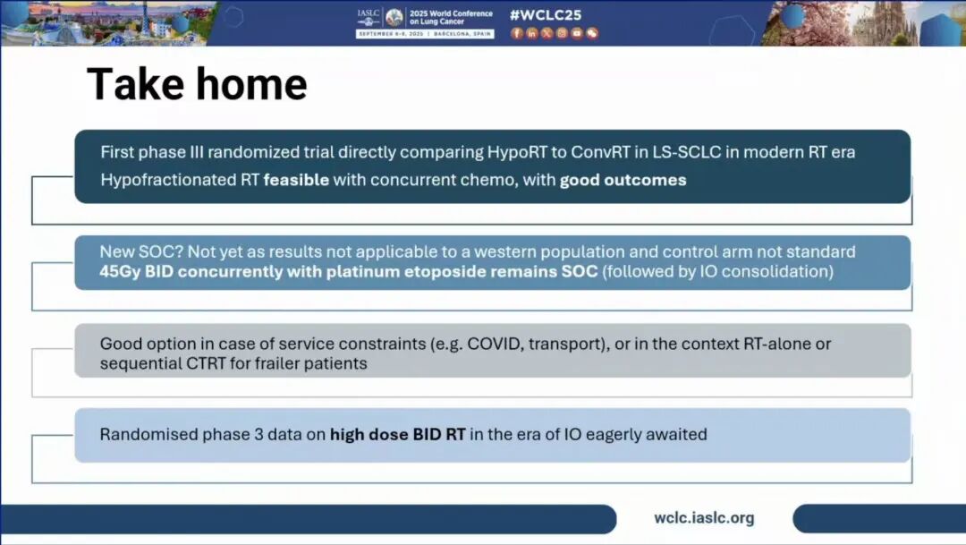 3. 局晚期SCLC:大分割放疗 PK 常规分割,未达到非劣效终点