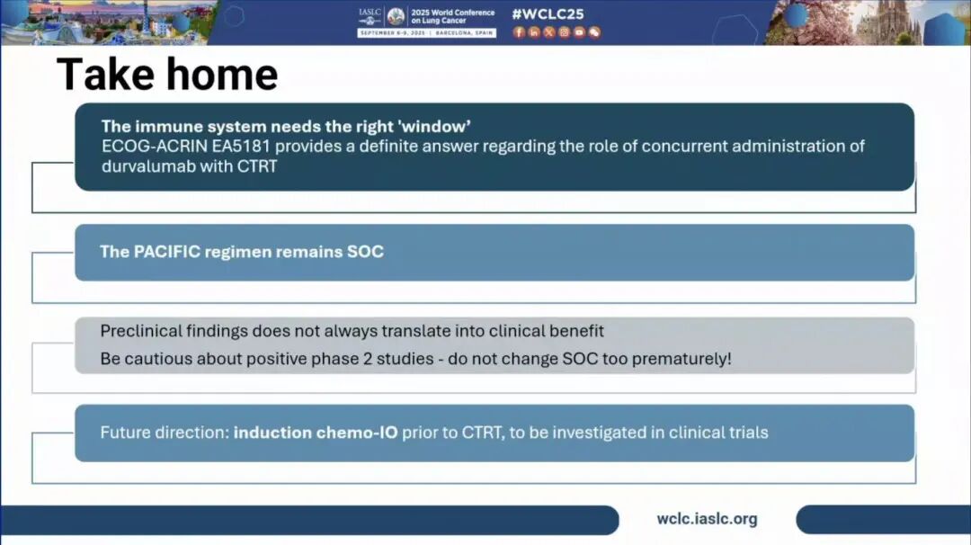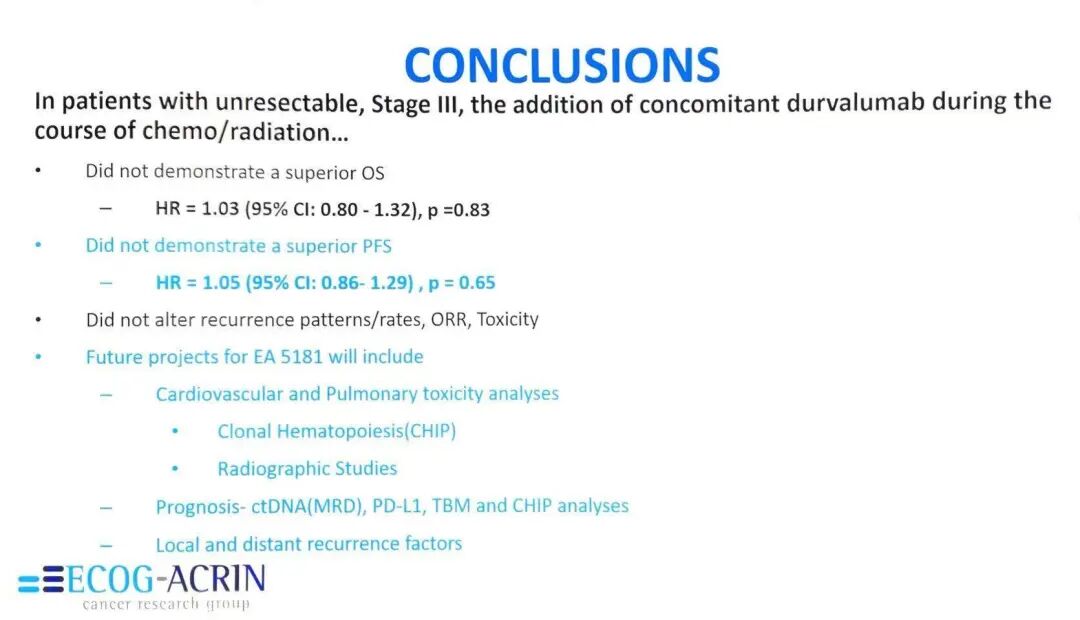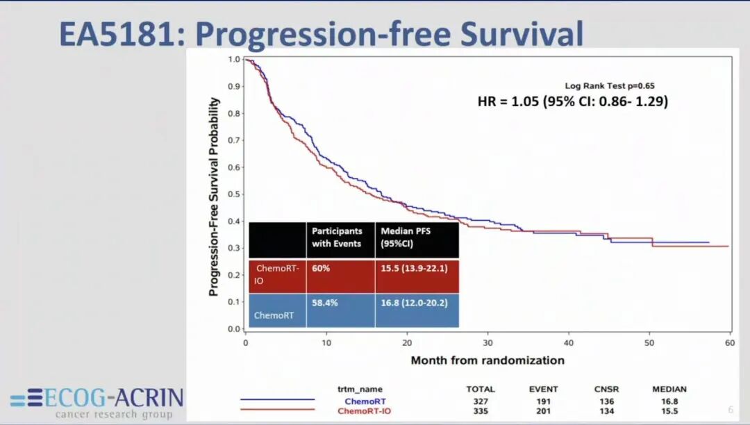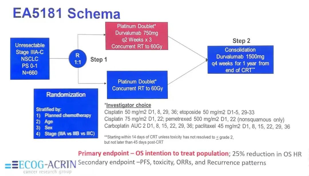 2. EA5181研究:I药同步放化+免疫巩固对比单纯免疫巩固,未见疗效提升?PACIFIC模式仍是标准。