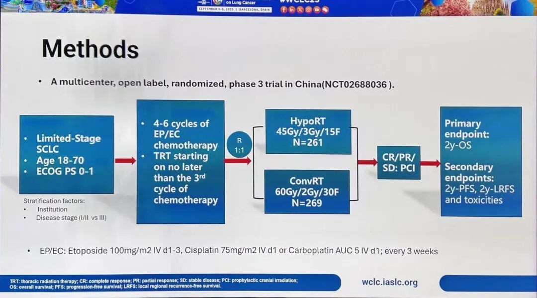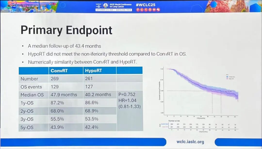 3、局晚期SCLC:大分割放疗 PK 常规分割,未达到非劣效终点