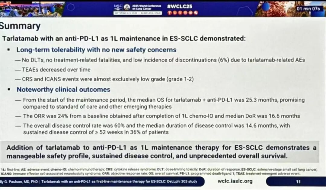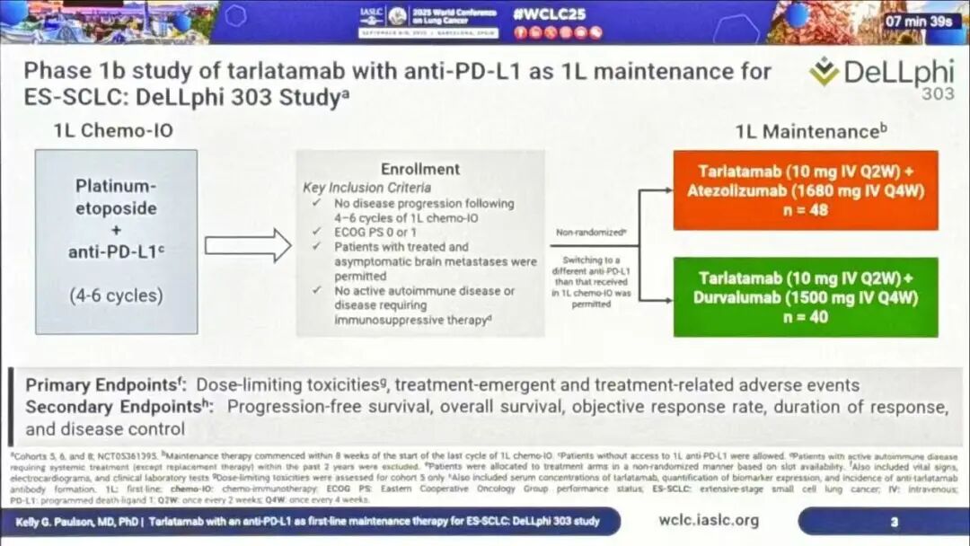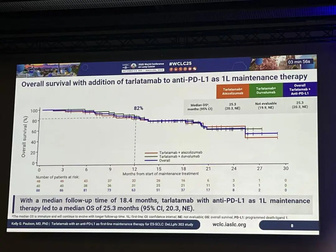 3.DeLLphi-303研究:tarlatamab联合EP冲击ES-SCLC一线OS达25.3个月。