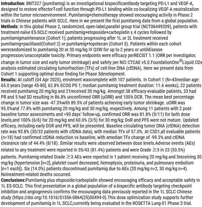 5、PDL1/VEGF-A双抗BNT327联合化疗一线治疗ES-SCLC,uORR 86.8%。
