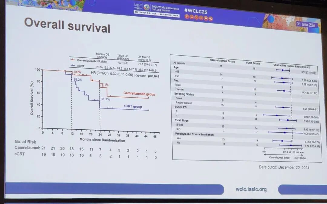 度伐利尤单抗的ADRIATIC研究打开了免疫治疗在局晚期SCLC的临床应用,在此基础上,一些新的探索模式不断诞生,此次国内的卡瑞利珠单抗在局晚期SCLC,先进行化免2周期诱导+同步放化疗+免疫巩固,对比化疗诱导+同步放化疗,PFS和OS均有提升(HR=0.42;0.32),提出了更多可能。