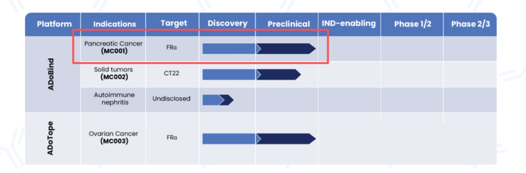 Medicovestor开发了一款FRα ADC MC001,适应症为胰腺癌,Payload使用MMAE。