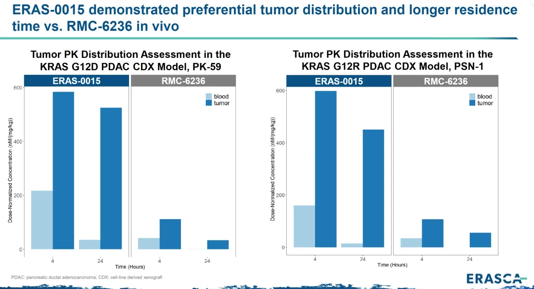 另外在体内研究显示,ERAS-0015相比Daraxonrasib具有更优的肿瘤分布和更长的驻留时间。