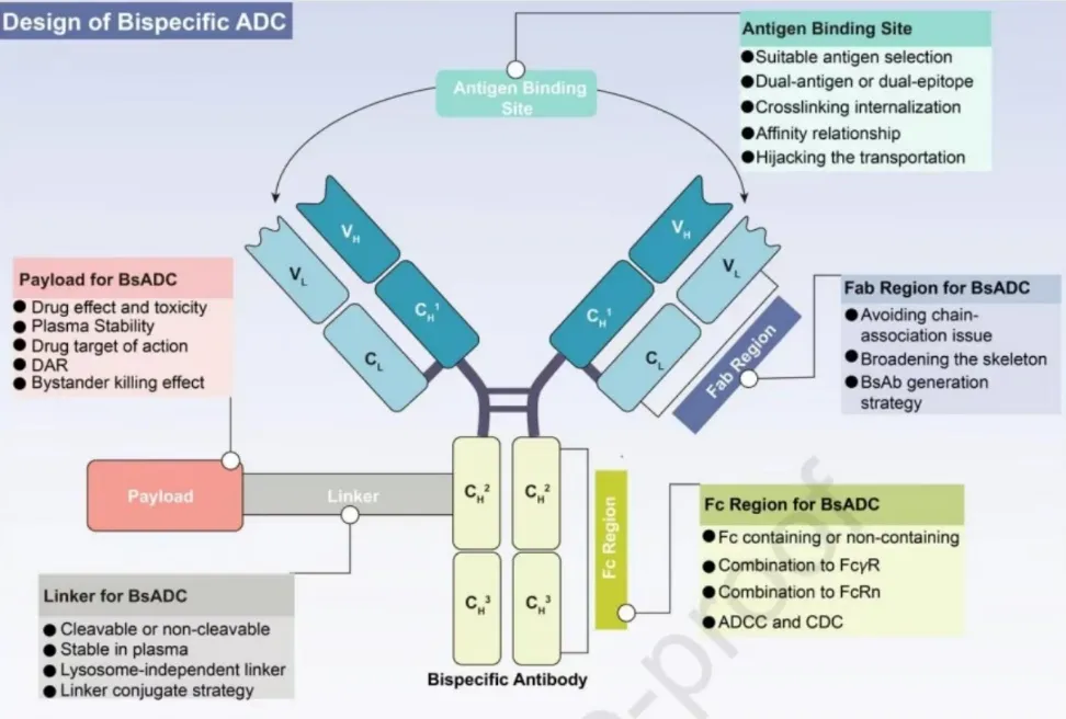 根据靶向策略的不同,双抗ADC主要分为两类:一类是针对同一抗原上不同表位的双表位ADC,可增强受体聚集与内吞效率;另一类为同时靶向两个不同抗原的双靶点ADC,能够协同抑制多个信号通路,实现更高效的抗肿瘤效应。