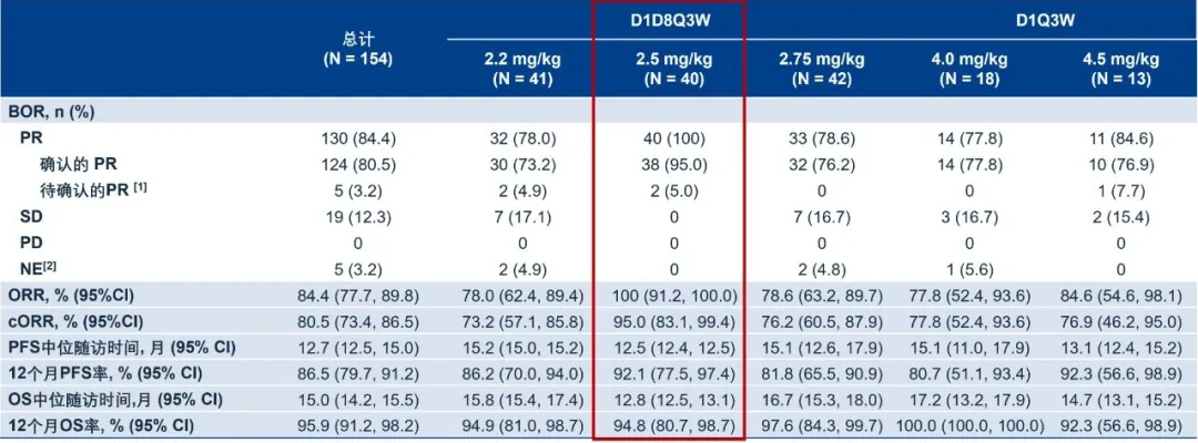 百利天恒的BL-B01D1是全球首款进入III期临床的 EGFR/HER3 双抗ADC。其III期鼻咽癌研究已达成主要终点,并在非小细胞肺癌、小细胞肺癌等10项III期临床中同步推进。该药物早期便凭借I期数据与BMS达成84亿美元的出海交易,创下中国单药License-out金额纪录。在2025年世界肺癌大会(WCLC)上,BL-B01D1联合奥希替尼一线治疗EGFR突变非小细胞肺癌的最新临床结果显示,在接受2.5mg/kg剂量的40名患者中,ORR达到了惊人的100%,为后续商业化奠定基础。