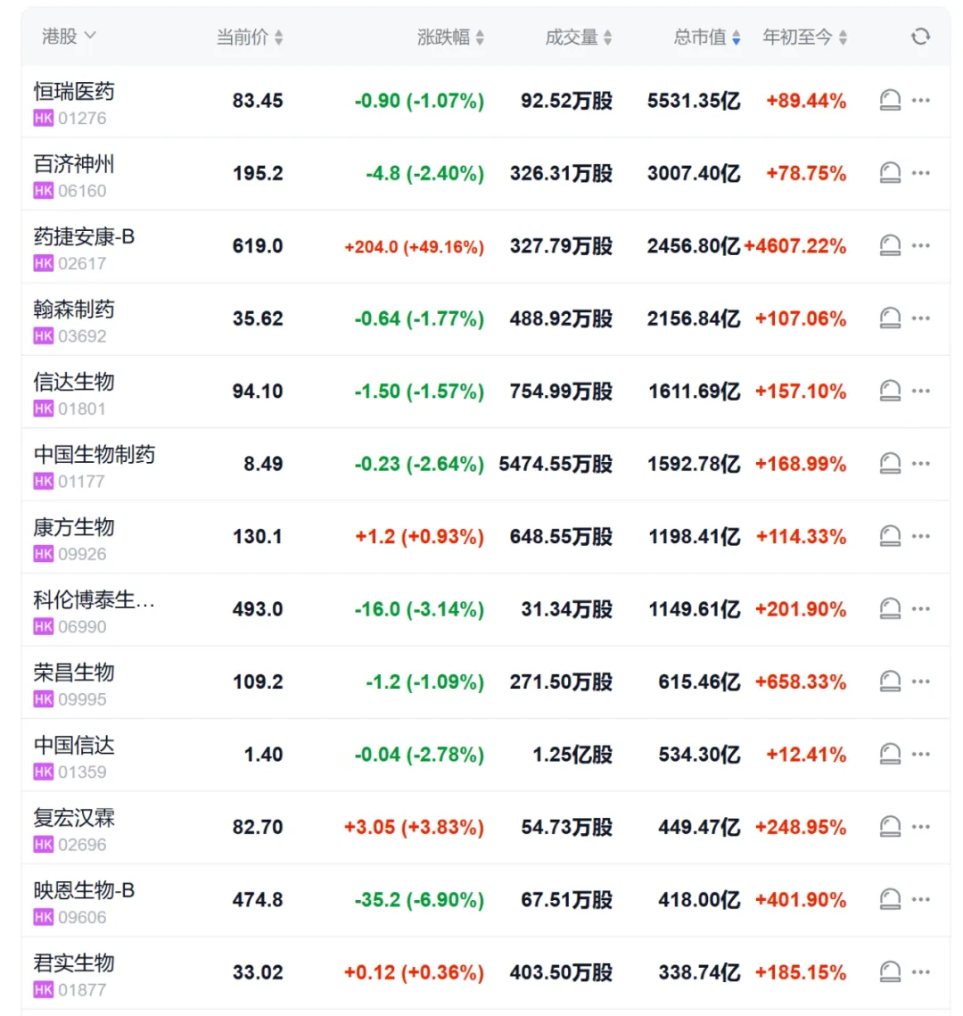 药捷安康的暴涨并非孤立事件,近期港股创新药板块整体表现活跃。