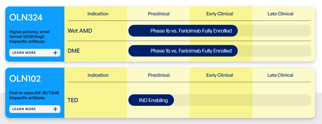 Ollin成立于2023年,致力于眼科药物的开发,目前该公司官网披露了两条药物管线,均从中国药企引进。