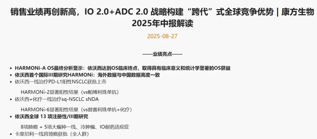HARMONi-2研究数据固然让市场增加了对依沃西能否获FDA审批的犹疑,这是以OS为金标准的新审查时代带来的;但卡度尼利和依沃西征战海外、迈向全球的脚步无法被阻挡,这是康方一以贯之的野心。