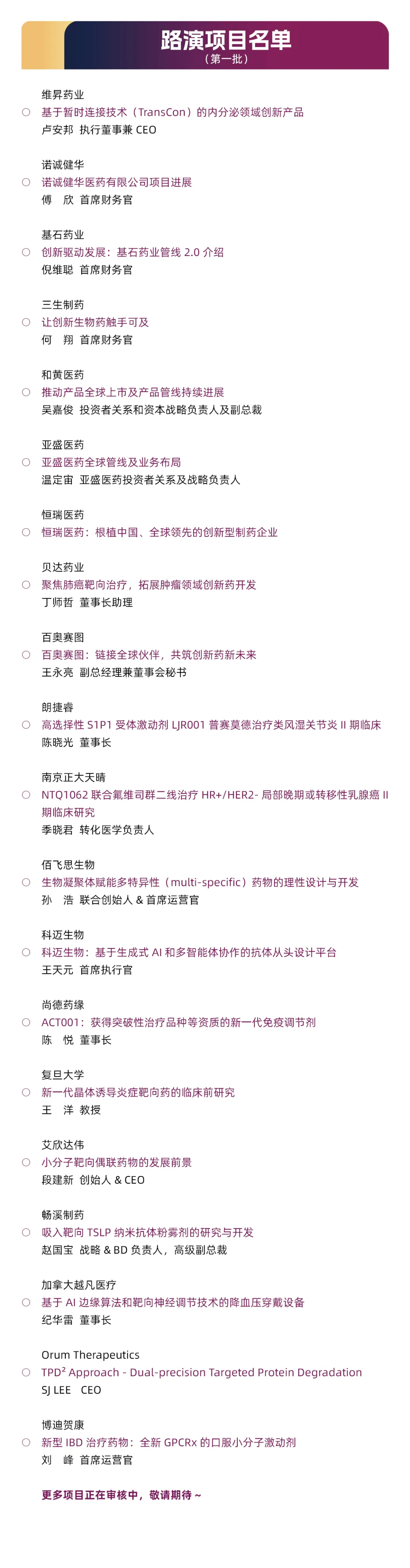 即刻锁定行业风向,共探医药未来!更多精彩日程与嘉宾信息将持续揭晓,敬请期待!