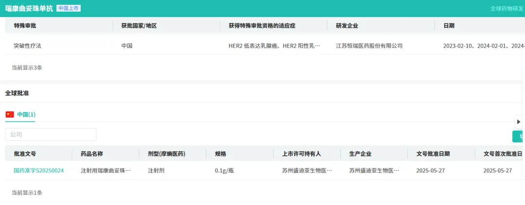 2025年5月,注射用瑞康曲妥珠单抗(商品名:艾维达®)已获批上市,用于治疗存在HER2(ERBB2)激活突变且既往接受过至少一种系统治疗的不可切除的局部晚期或转移性非小细胞肺癌(NSCLC)成人患者,是国内首个自主研发获批用于HER2突变NSCLC患者的ADC药物。截至目前,该药物已有九项适应症被纳入突破性治疗品种名单。此外,瑞康曲妥珠单抗正开展多项临床研究,覆盖HER2表达的晚期实体瘤、非小细胞肺癌、乳腺癌、胃或胃食管结合部腺癌、结直肠癌、胆道癌、妇科恶性肿瘤等多个领域。