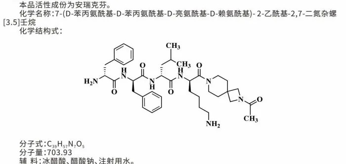 来源:安瑞克芬注射液说明书