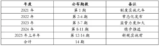 据统计,2021年作为制度实施元年公布1期结果,2022年和2023年分别公布3期,2024年公布4期,2025年截至目前已公布3期,总计十四期。截至2024年底,评定失信企业735家,其中“特别严重”失信企业7家、“严重”失信企业40家、“中等”失信企业76家、“一般”失信企业612家。