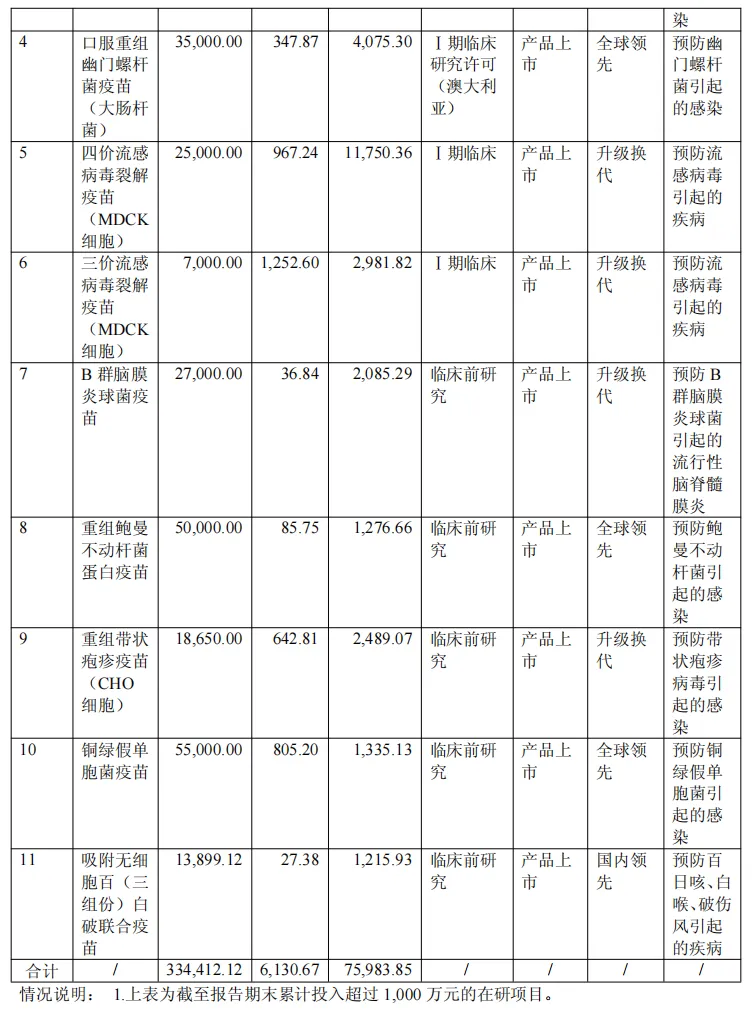 此外,公司三价及四价流感病毒裂解疫苗(MDCK细胞)Ⅰ期临床试验完成受试者入组,这标志着公司在病毒疫苗领域取得重要进展。