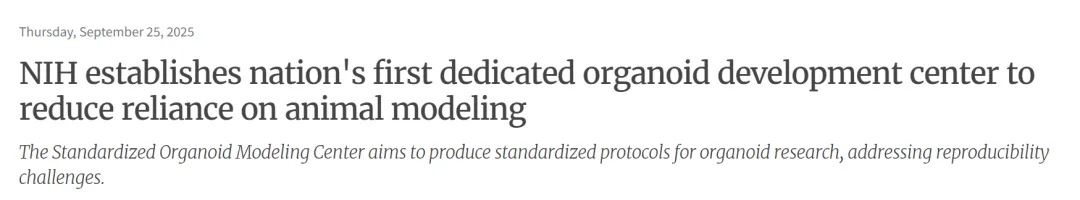仅仅两个月后,NIH再度迈出关键一步,宣布成立全美首个专注于类器官研发的国家级中心——“标准化类器官建模中心”(SOM Center)。这项耗资8700万美元、为期三年的重大举措,标志着人类在减少动物实验依赖、迈向更精准、更人道的生物医学研究道路上迈出关键一步。