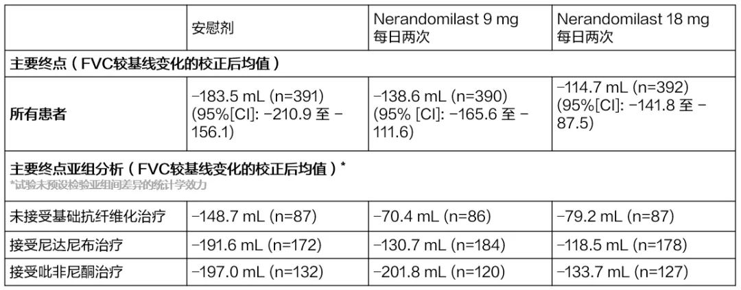 值得注意的是,该研究还证明无论患者是否接受背景抗纤维化治疗,nerandomilast均表现出一致的疗效,为联合治疗提供了强有力的证据。