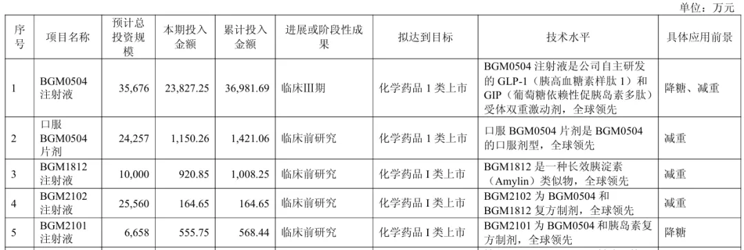 除了注射剂型外,还有口服BGM0504片剂。该产品减重适应症已获美国FDA已正式批准开展I期临床,在中国也已递交IND申请。