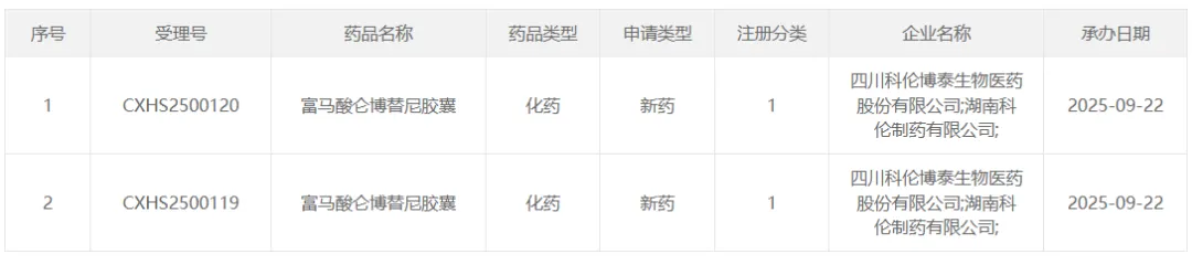 9 月 22 日,科伦博泰的富马酸仑博替尼胶囊上市申请获受理,适应症为用于治疗 RET 融合阳性局部晚期或转移性非小细胞肺癌 (NSCLC) 成人患者。此前,国内仅有两款进口 RET 抑制剂获批,仑博替尼是首个报上市的国产 RET 抑制剂。