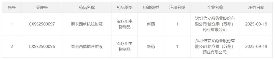 9 月 19 日,信立泰的泰卡西单抗注射液上市申请获得受理,适应症为用于高胆固醇血症和混合型血脂异常。这是第 5 款报产的国产 PCSK9 单抗。