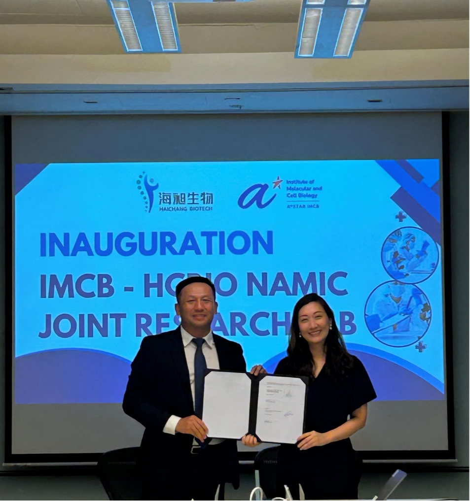 2025年9月15日,浙江海昶生物医药股份有限公司(以下简称“海昶生物”)与新加坡科学技术研究局(Agency for Science, Technology and Research,以下简称“A*STAR”)分子和细胞生物学研究院 (Institute of Molecular and Cell Biology, 以下简称 “IMCB”) 正式就未来在新加坡开展研发与创新合作达成战略合作。双方将充分发挥各自优势,探索多层次、多领域的合作模式,共同推动前沿生物医药技术的国际化发展与应用落地。