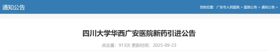 四川大学华西广安医院新药引进“双通道”药品品种目录