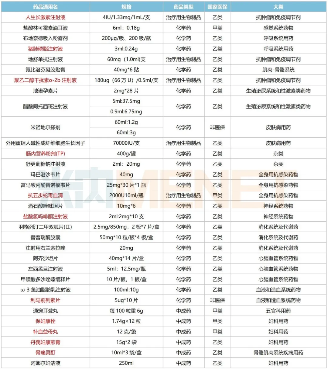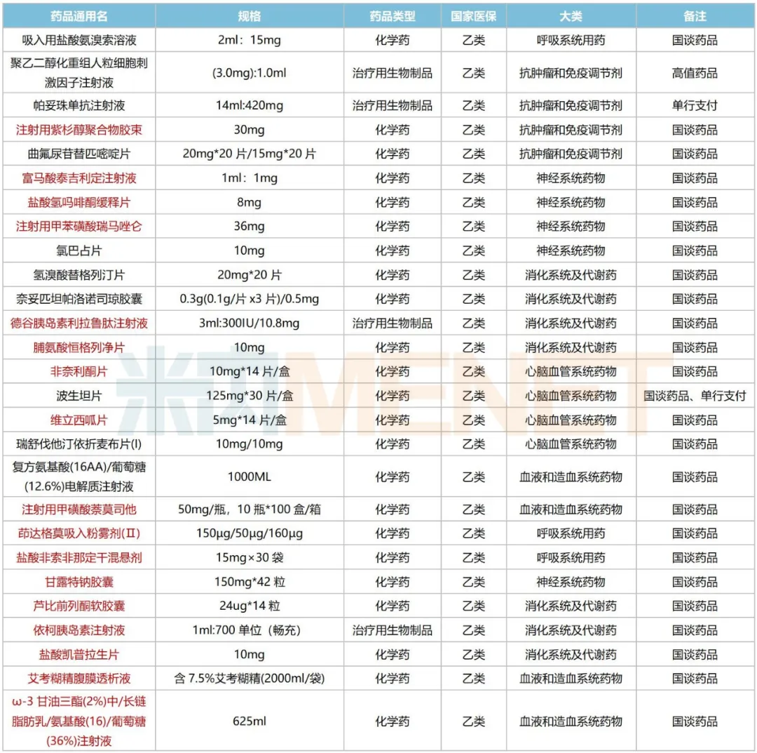 注:标红为独家品种