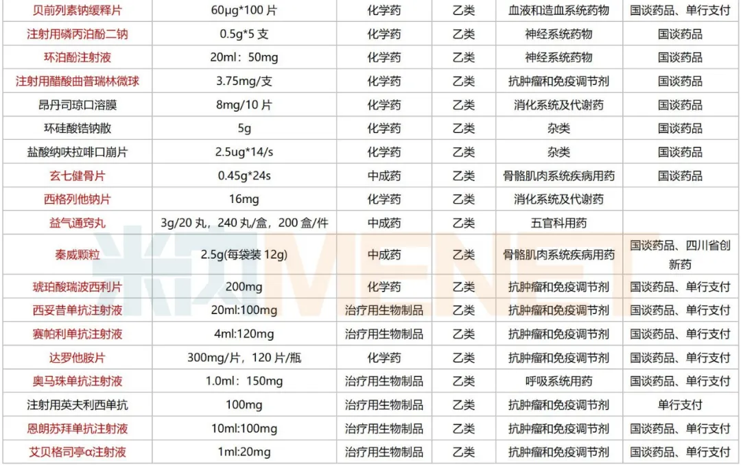 32个为独家品种(含独家剂型),其中恒瑞医药、拜耳以3个品种并列领跑,人福医药、诺和诺德、诺华等均有2个品种在列,济川、海思科、方盛制药、科伦、南京正大天晴、石药等亦有品种在列。