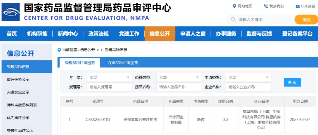 图1. 布瑞基奥仑赛申报上市,来源:CDE官网
