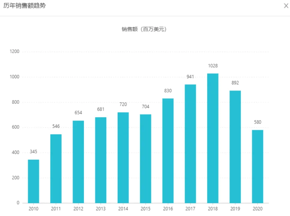 它在2002年就在美国上市用于抗雌激素药物(如他莫昔芬)治疗后病情仍趋恶化的绝经后乳腺癌患者,在2018 年该药销售额达到峰值10.28