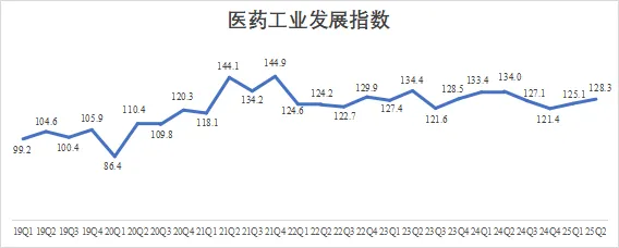 2025Q2医药工业发展指数为128.3,同比下降4.2%,环比增长2.5%。在医药政策持续推进、市场竞争持续加剧以及部分药品价格波动等多重因素的综合影响下,医药工业延续结构性分化调整态势,整体营收和利润增长仍面临一定压力,行业整体持续承压。