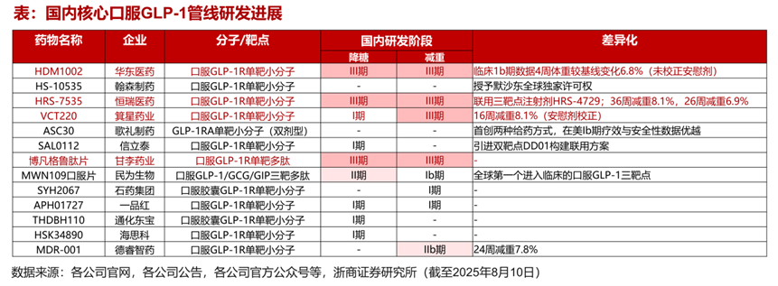 目前,已公布临床数据的国产GLP-1小分子药物,包括歌礼制药ASC30、华东医药HDM1002、硕迪生物GSBR-1290、锐格医药RGT-075、德睿智药MDR-001等。