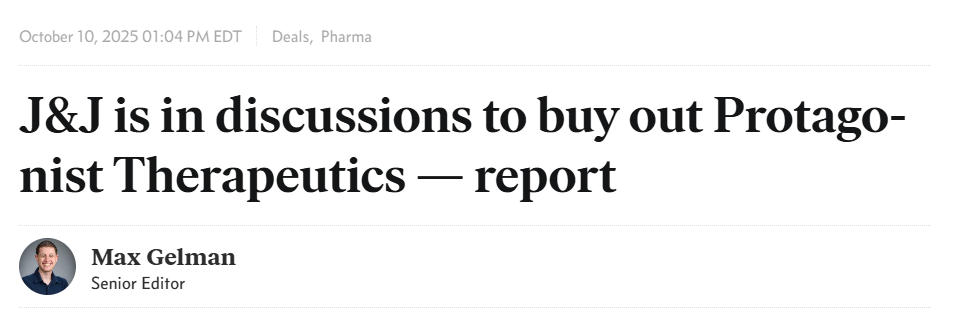 近日,据外媒报道,强生正在洽谈收购其免疫治疗合作伙伴Protagonist Therapeutics(NASDAQ:PTGX),交易金额预计超过285亿人民币(约合40亿美元)。这笔收购背后的核心资产,是一款即将改变银屑病治疗格局的口服环肽IL-23抑制剂icotrokinra。