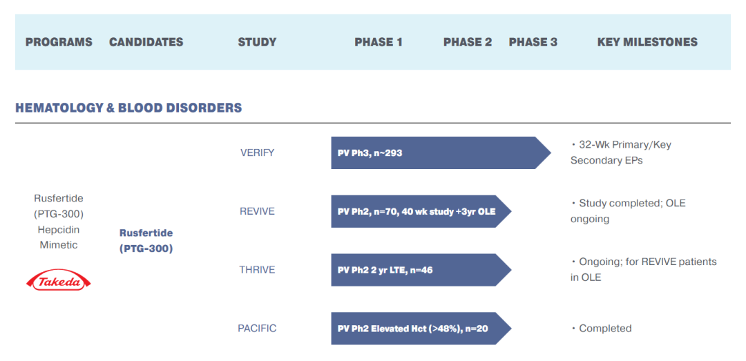 还在开发一种名为rusfertide的药物,这种药物的研发经历了起起落落。在四年前被临床搁置之后,rusfertide在今年的ASCO上获得了积极的全体报告,讨论了其成功治疗罕见血液疾病真性红细胞增多症的3期数据。