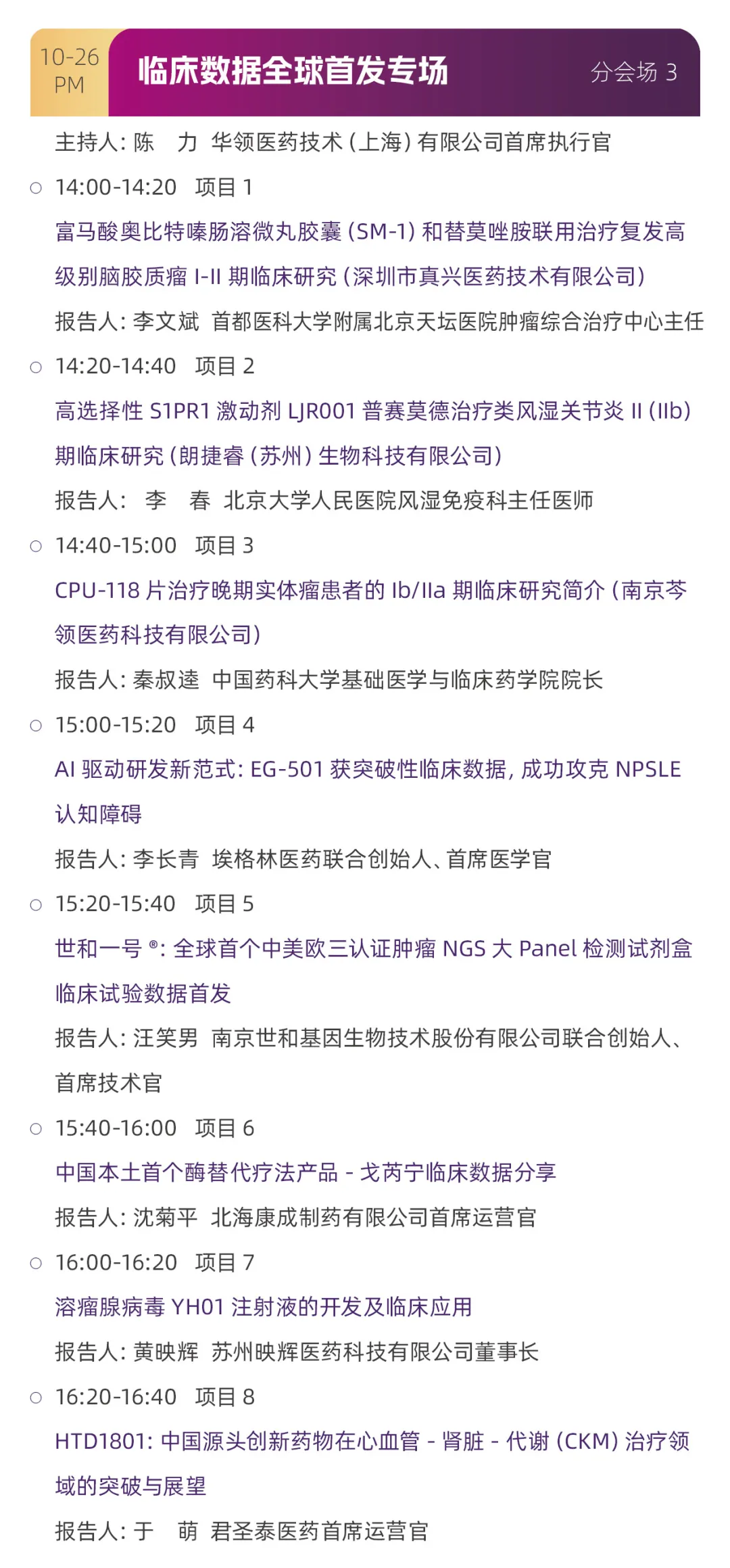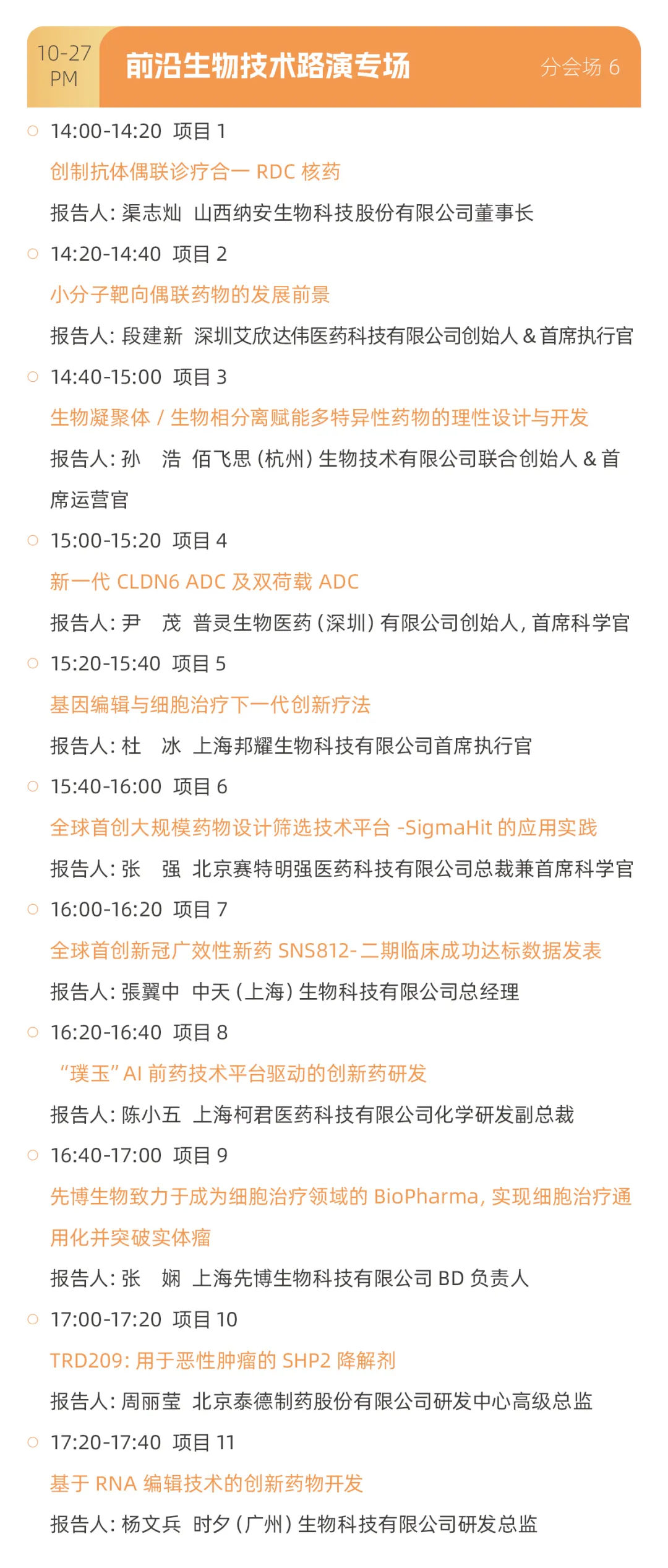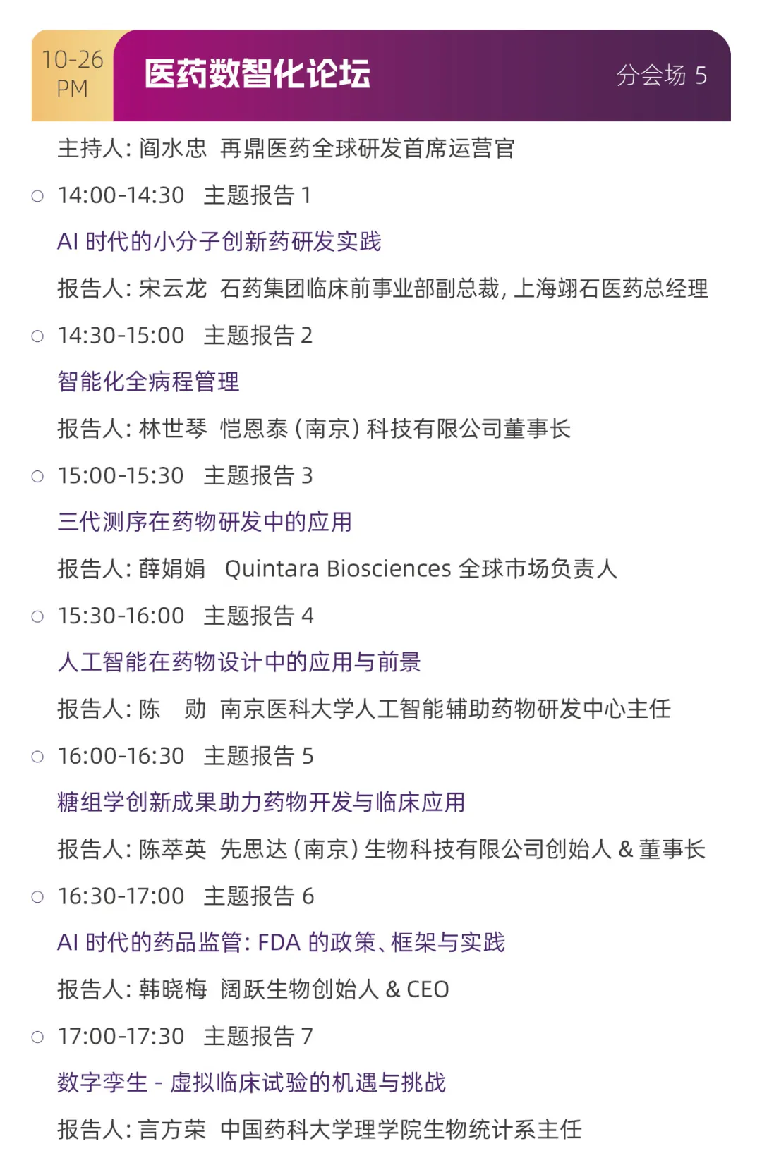 本届大会聚焦AI赋能医药研发、基因与细胞治疗等领域,技术细分与前沿突破并重,同时覆盖从核药、PROTAC技术的全链条创新赛道,纳入罕见病与儿童药、国际项目等多元化主题。