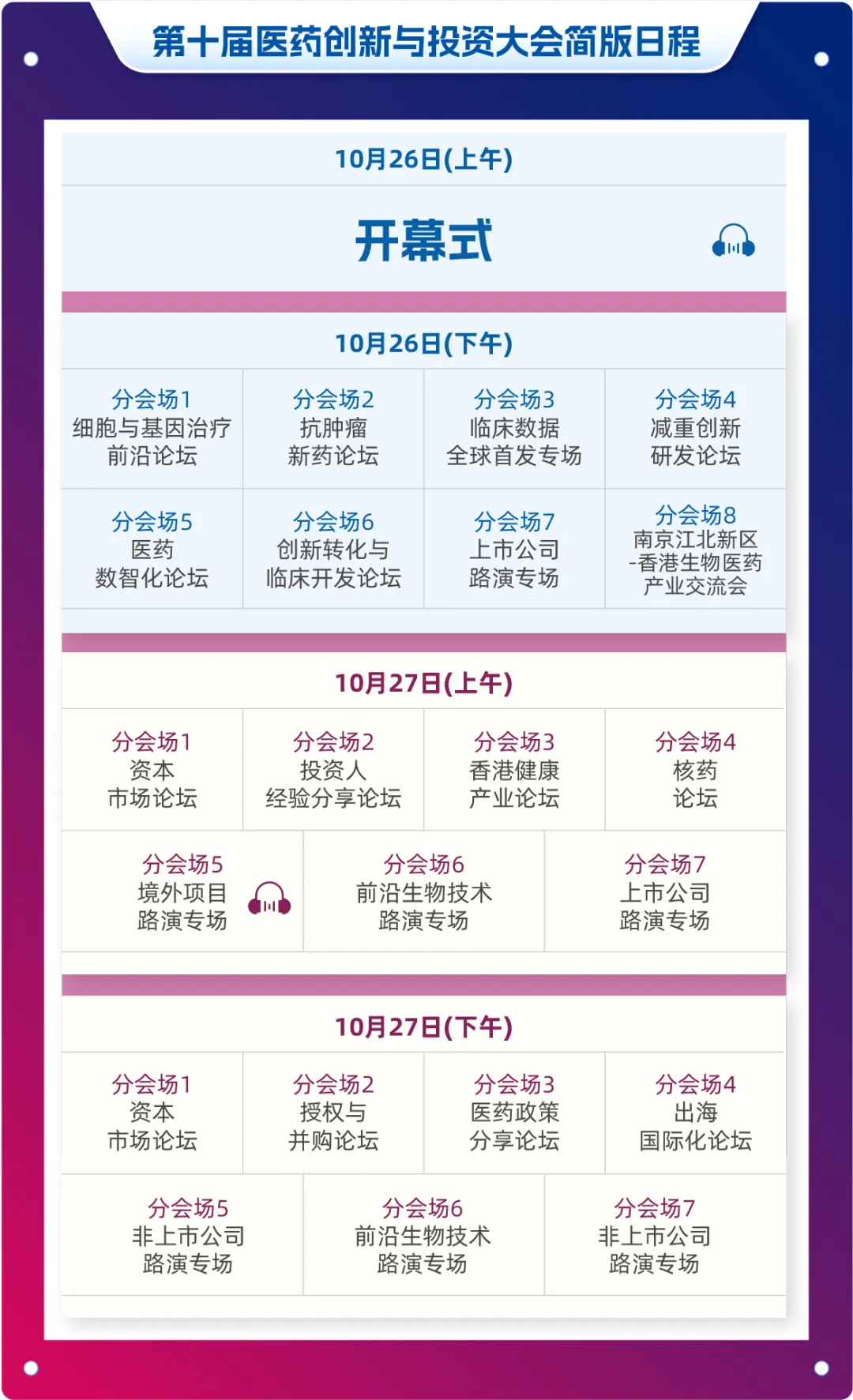 十年征程,创新永续,10月26-27日,第十届医药创新与投资大会将于南京丰大国际大酒店盛大举行。终版日程今日正式发布,汇集医药创新与投资领域的顶尖智慧,关注全球医药研发最新动态,聚力共赢,共启新程。