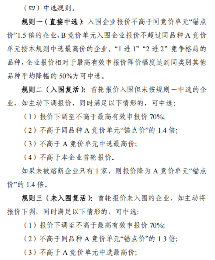 根据征求意见稿,“锚点价”由两个数据取高值构成:同竞价单元入围均价的60%或同竞价单元最低报价。