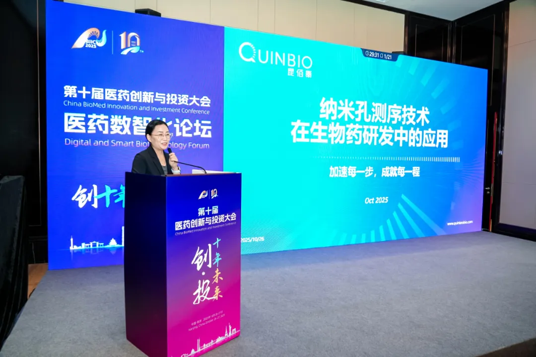 昆佰泰生物技术公司全球市场负责人薛娟娟博士和与会嘉宾分享了纳米孔测序技术在生物药研发中的相关实践。薛博士指出:纳米孔测序技术是通过检测核酸分子(DNA或RNA)穿过纳米级小孔时引起的电流变化来识别碱基序列。不同碱基以其独特的分子结构和电荷特性,对纳米孔中的离子电流产生特征性的扰动,被实时捕捉为“电流指纹”,随后通过算法解码,转化为精确的核酸序列信息。纳米孔测序技术在靶点发现与验证、抗体筛选与优化、临床前研究、临床试验和生产与质控等环节都可有效应用于生物药的创新研发。目前,纳米孔测序技术在技术、成本和应用标准化3个方面还存在着巨大的机遇和挑战。伴随着纳米孔测序技术的不断发展,将为创新药的研发提供更广泛的智能解决方案。