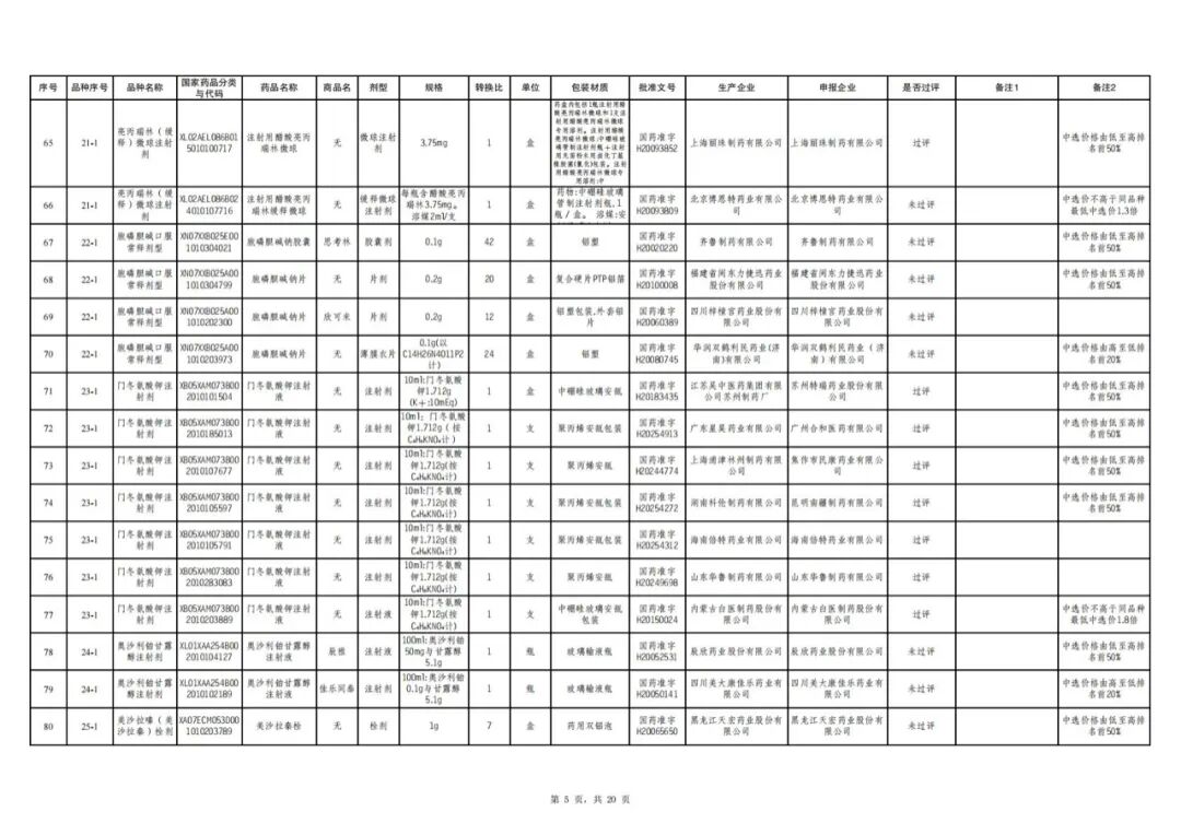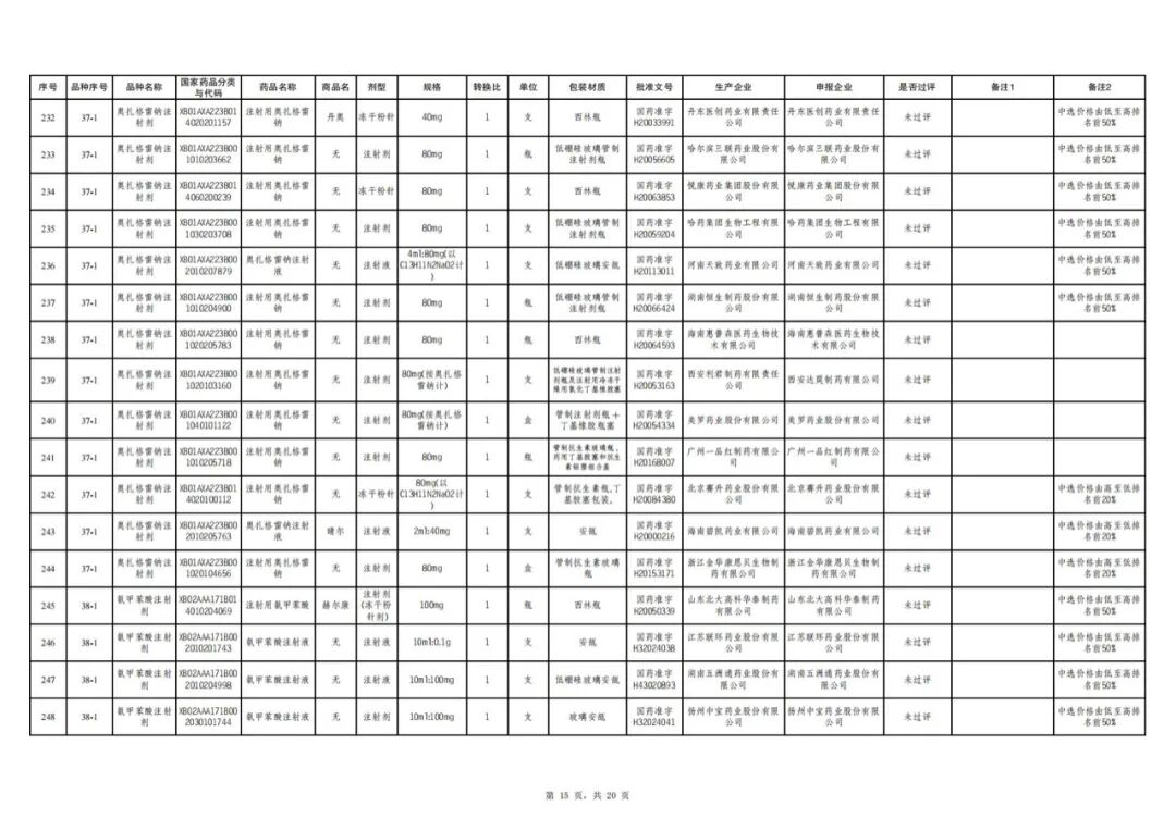 值得注意的是,有2个产品曾出现在拟中选名单中,最终却意外出局。一个是河北常山生化药业生产的过评品种达肝素钠注射液(0.2ml:5000AXaIU),另一个是河南科伦药业生产的未过评品种氯甲苯酸注射液(5ml:50mg)。