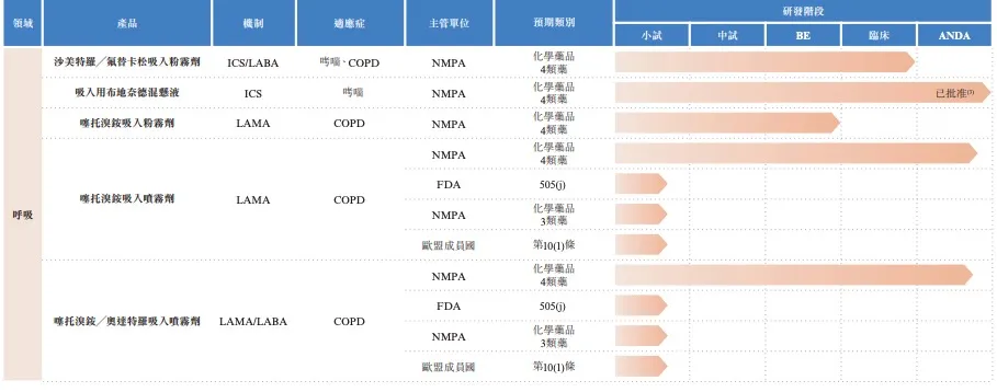 在呼吸系统疾病领域,博瑞医药正研发具有高进入壁垒的高端吸入式候选产品,这些产品源自我们药械组合技术平台的先进递送系统。