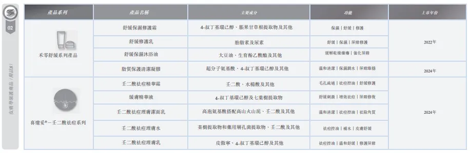 在皮肤学级护肤品领域,其代表性产品包括禾零舒缓系列产品与喜辽妥®—壬二酸产品系列。