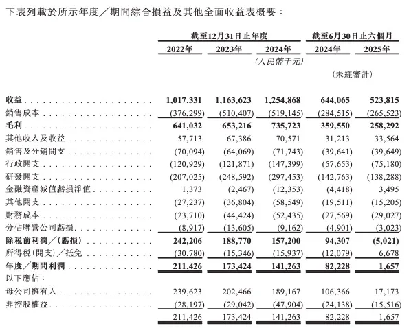 财务方面,博瑞医药截至2022年、2023年及2024年12月31日止年度以及截至2024年及2025年6月30日止六个月,收入分别为人民币1,017.3百万元、人民币1,163.6百万元、人民币1,254.9百万元、人民币644.1百万元及人民币523.8百万元。