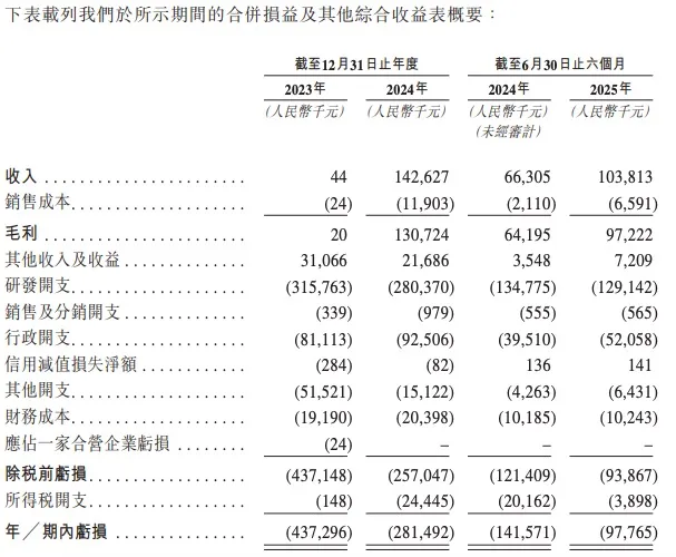 截至2022年、2023年及2024年12月31日止年度以及截至2025年6月30日止六个月,其净亏损分别为人民币55.2百万元、人民币4.7百万元、人民币105.6百万元及人民币31.1百万元。
