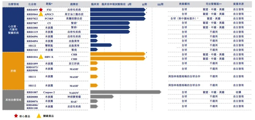 除核心产品RBD4059外,瑞博生物亦正在推进两款关键产品RBD5044及RBD1016。
