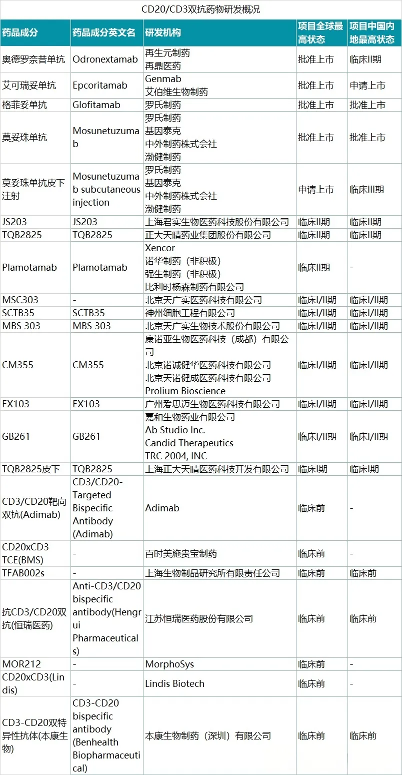 表1:全球CD20×CD3双抗赛道管线(来源:凯莱英药闻)
