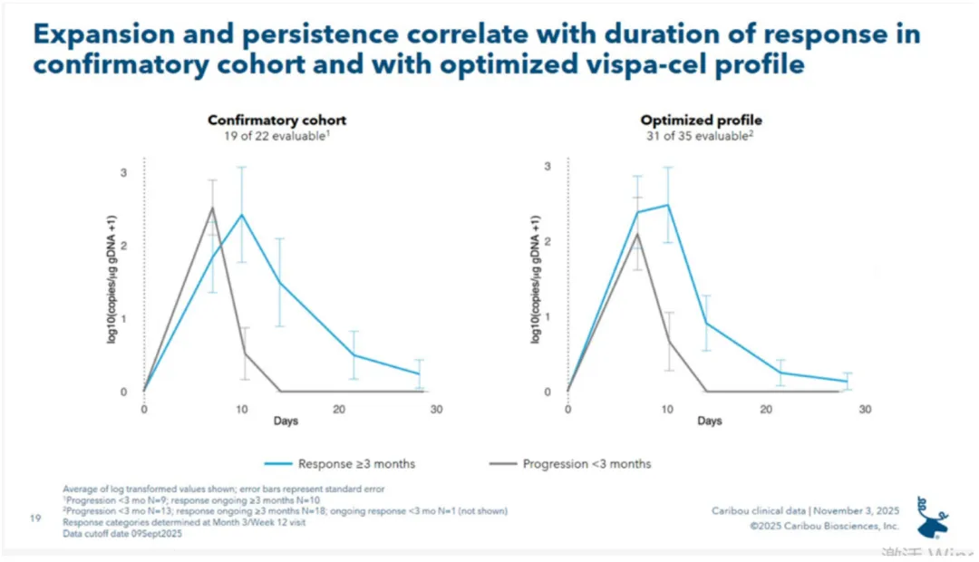 与自体CAR-T比较,CT1190B的扩增数据亦可媲美。Kymriah在淋巴瘤适应症中的Cmax均值为10³至10⁴ copies/ug gDNA,CT1190B展示出更高的扩增水平。