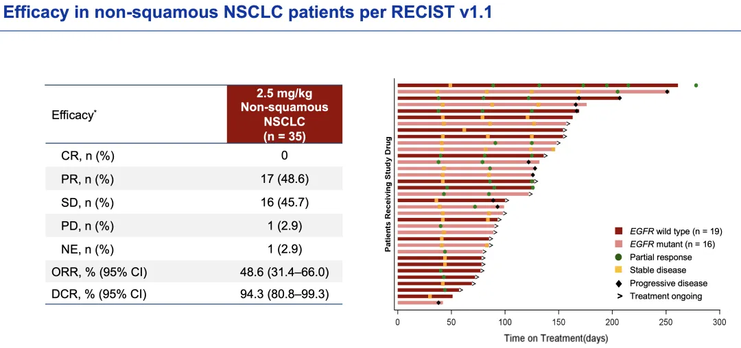 pct),在PD-L1阴性(TPS<1%,n=43)患者群体中,ORR为39.5%(+1.4pct),疗效不受PD-L1表达限制,有望覆盖更广泛的患者群体。