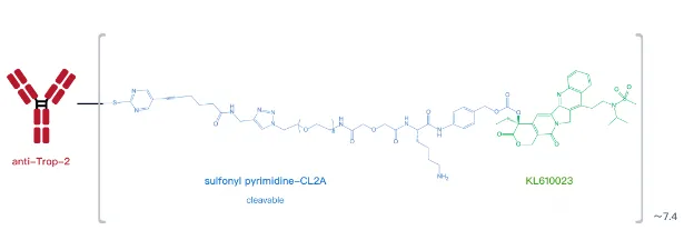 相比之下,竞争对手在细节上的优化正凸显优势。默沙东的芦康沙妥珠单抗虽采用和Trodelvy类似的pH依赖裂解方式,但连接子方面采用了优化的、不可逆的位点特异性甲磺酰基嘧啶-硫醇偶联,使其半衰期显著高于前者,稳定性更高。