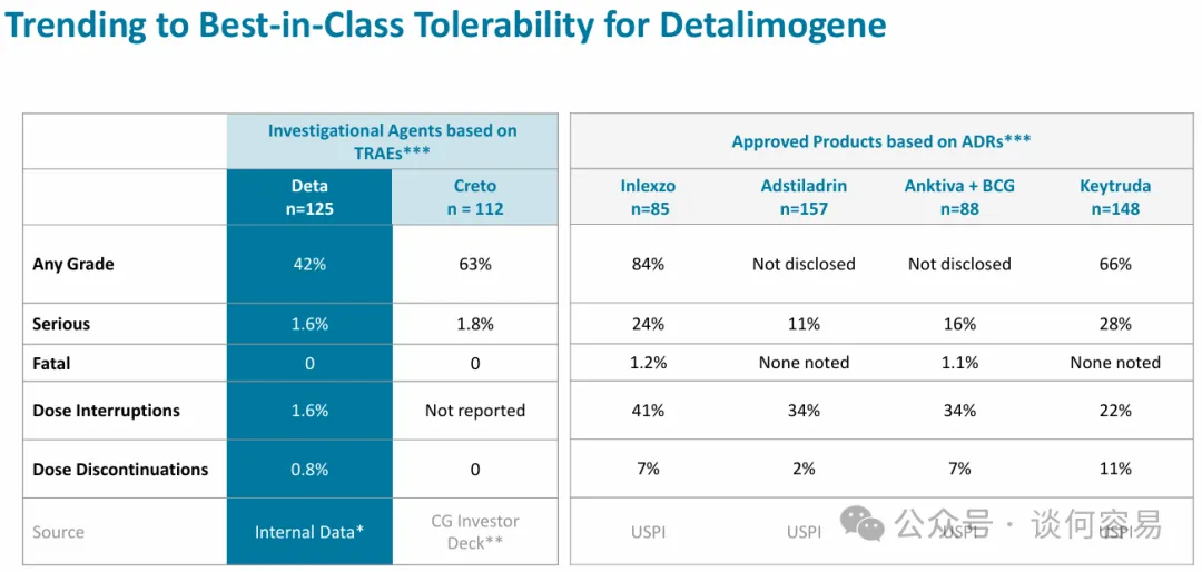Detalimogene 的安全性数据显著优于目前已获批的疗法。